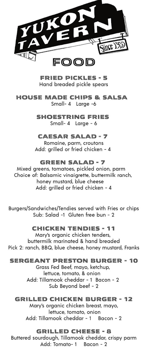 Welcome to Yukon Tavern, a hidden gem tucked away in the heart of Portland. This nostalgic dive bar merges classic vibes with an inviting atmosphere—perfect for escaping the hustle of everyday life. Located at 5819 SE Milwaukie Ave, Yukon Tavern offers a menu brimming with comforting favorites.